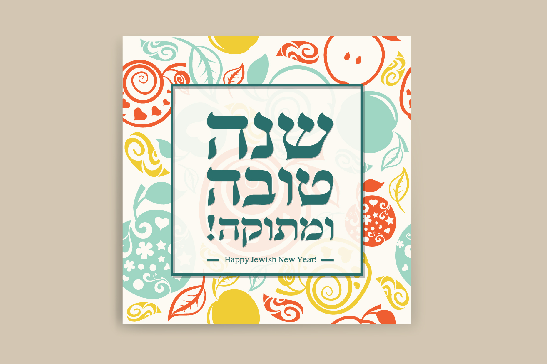 Created Rosh Hashanah backgrounds and cards, illustrations for posters, banners, prints, logos, signs, and patterns in a flat style, featuring typography inscriptions.
